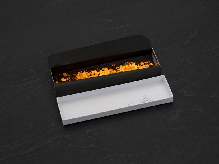The digital collage was printed on silk velvet, which gives it a very three-dimensional appearance. Leila Hekmat modelled it on the work of the French artist Gaspard Grégoire, who wove portraits into silk velvet in the 19th century and thus achieved a high luminosity and tactile quality. She cut the velvet to size and stitched it onto black, acid-free passe-partout cardboard made from cotton rags.