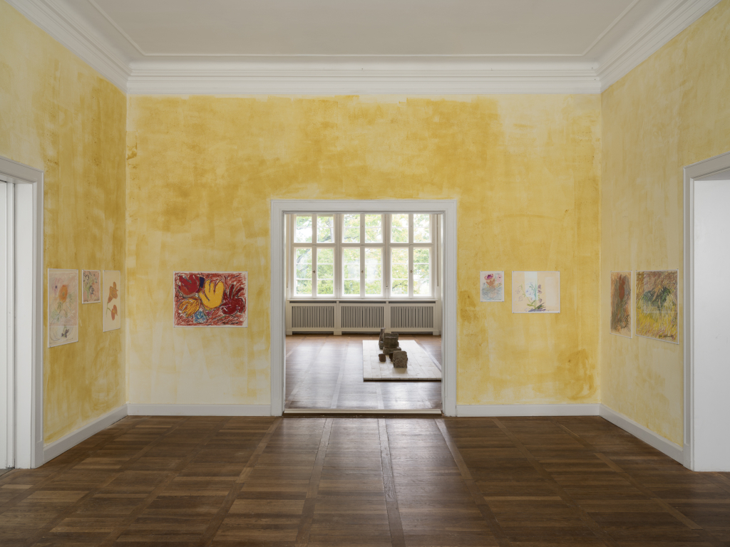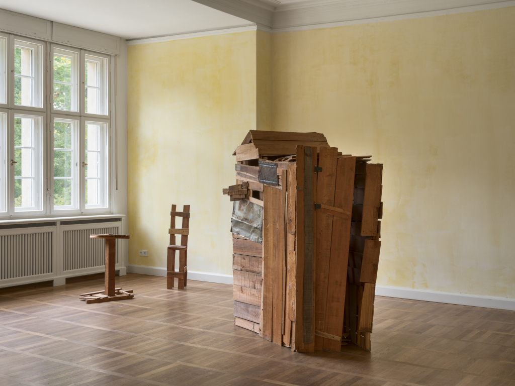 Middle: Beverly Buchanan, Church on Fire, 1997, Background: Ima-Abasi Okon, Sex, 2025, Installation view Beverly Buchanan. Weathering with Ima-Abasi Okon, Haus am Waldsee, 2025, photo: Julian Blum