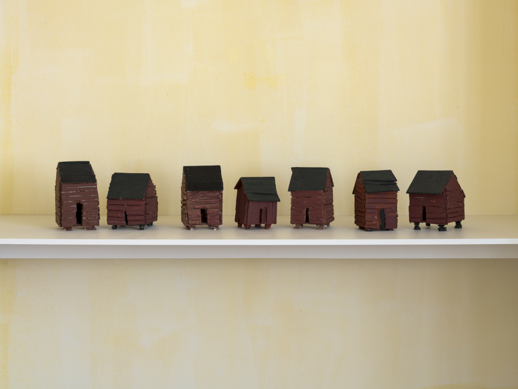 Beverly Buchanan, 7 Houses, 1997, background: Ima-Abasi Okon, Sex, 2025, Installation view Beverly Buchanan. Weathering with Ima-Abasi Okon, Haus am Waldsee, 2025, photo: Julian Blum